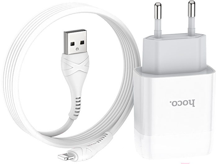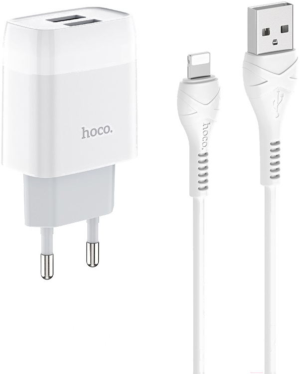 Зарядное устройство сетевое Hoco C73A + кабель Lightning / 6931474713056 (белый)