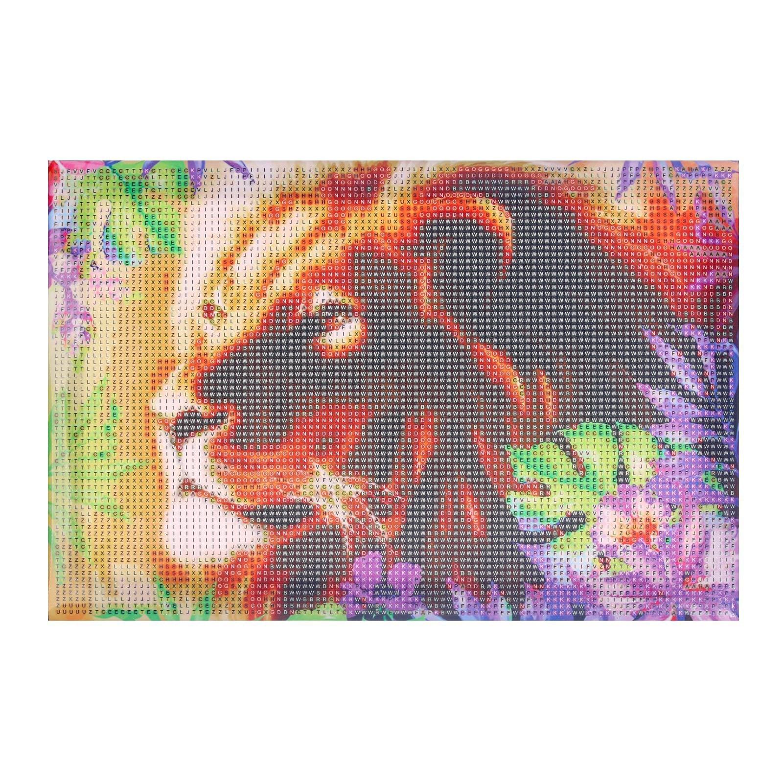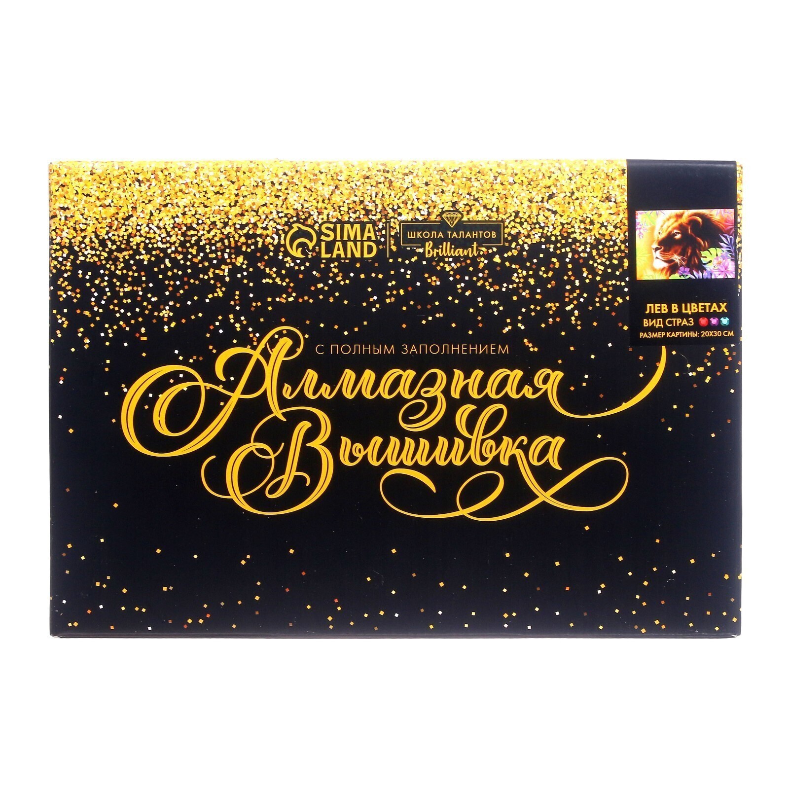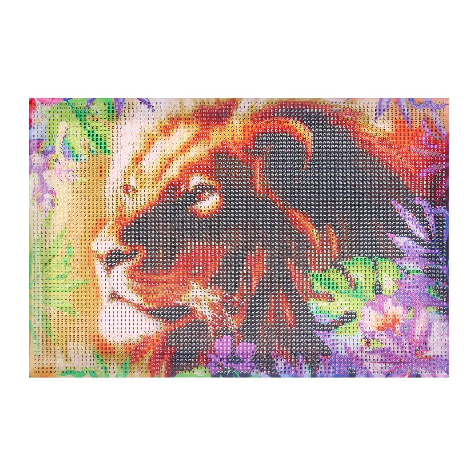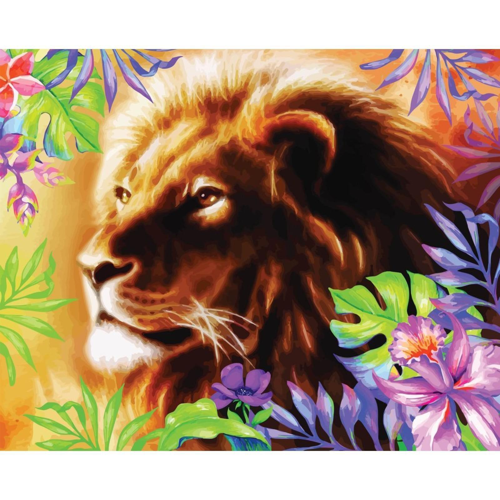 Алмазная мозаика на подрамнике с полным заполнением «Лев в цветах», 20х30 см