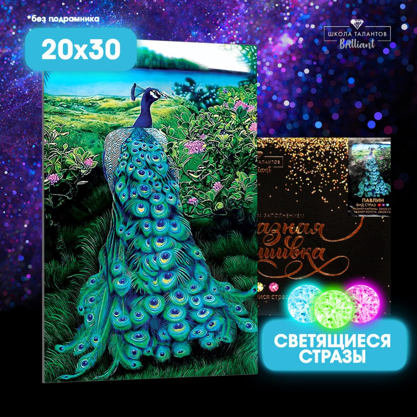 Алмазная мозаика со светящимися стразами «Павлин» 20х30 см, на холсте