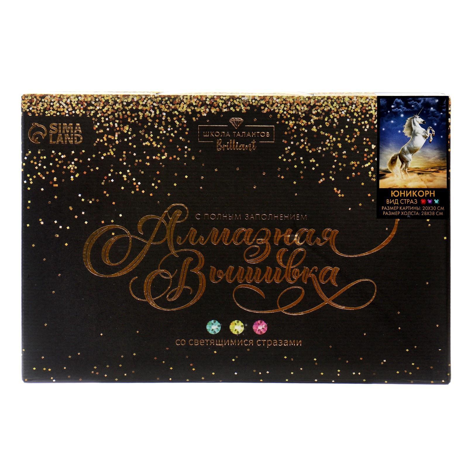 Алмазная мозаика со светящимися стразами «Юникорн» 20х30 см, на холсте