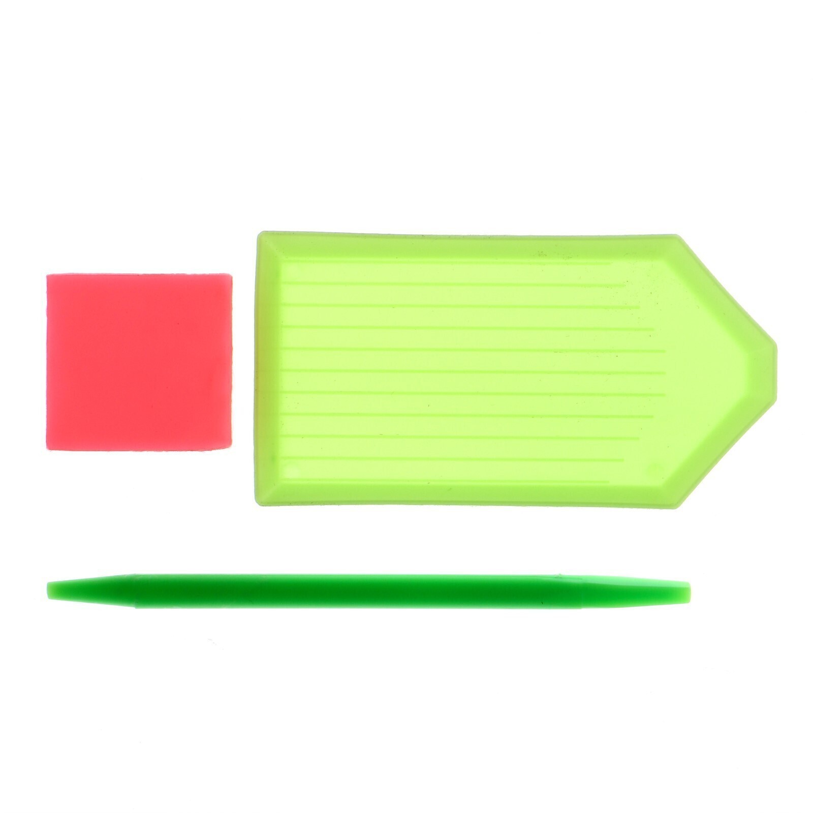 Разложите кристаллики с помощью карандаша по указанной схеме, заполнив полотно. На картине уже обозначены необходимые оттенки. Холст с клеевым покрытием будет надёжно удерживать стразы.