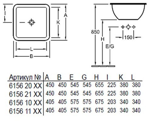 Умывальник Loop & Friends 6156 11 XX для установки на столешницу без перелива и отверстия для смесителя