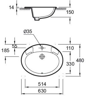 умывальник встраиваемый jacob delafon ovale 63x48 e1273-00