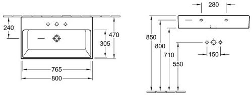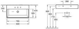 Умывальник Memento 5133 85 XX с переливом и полкой под смеситель на одно отверстие