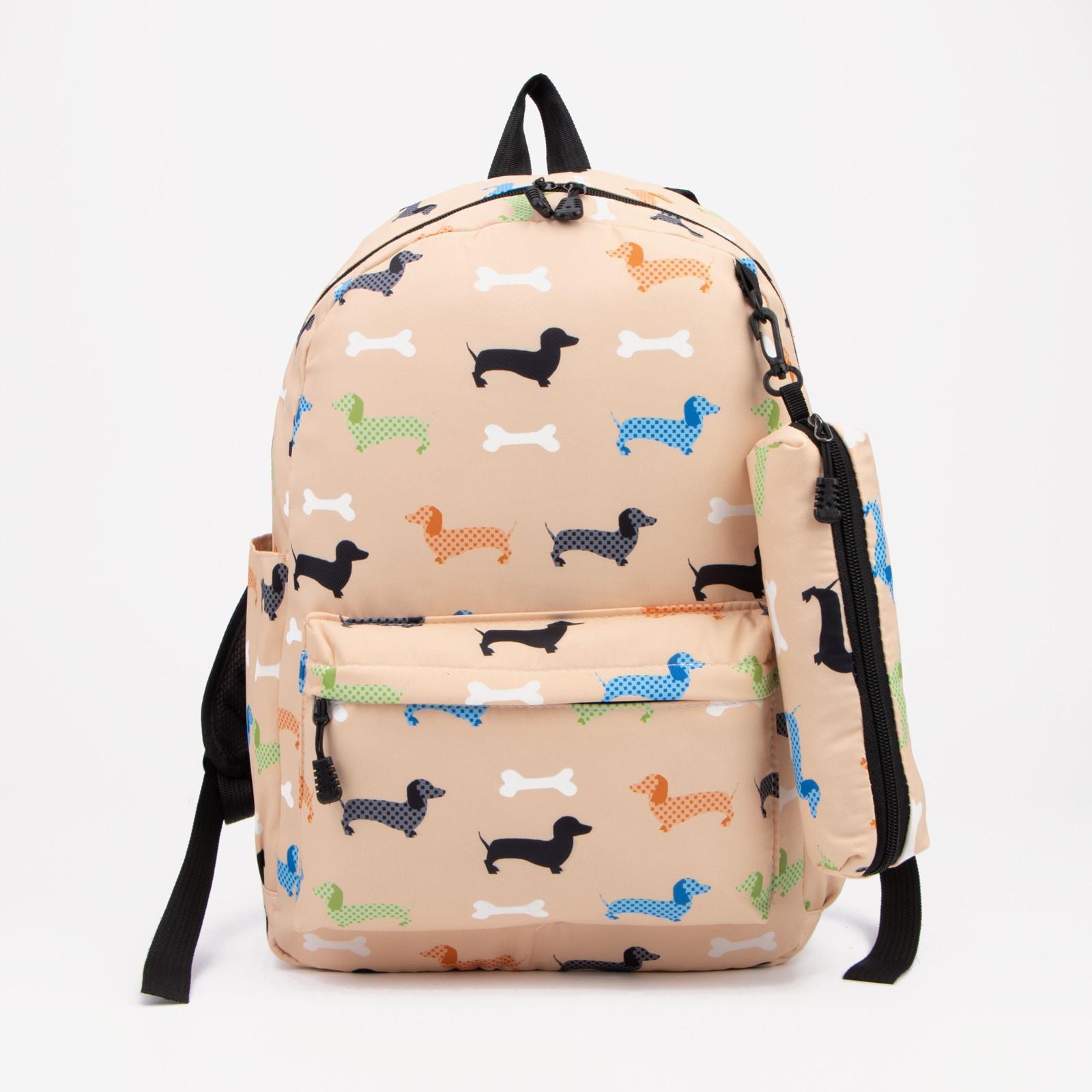 Рюкзак на молнии, наружный карман, пенал, цвет бежевый