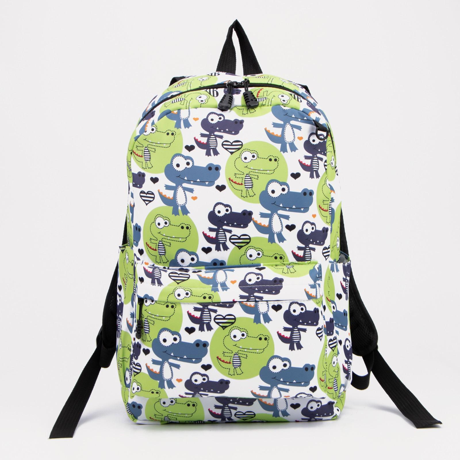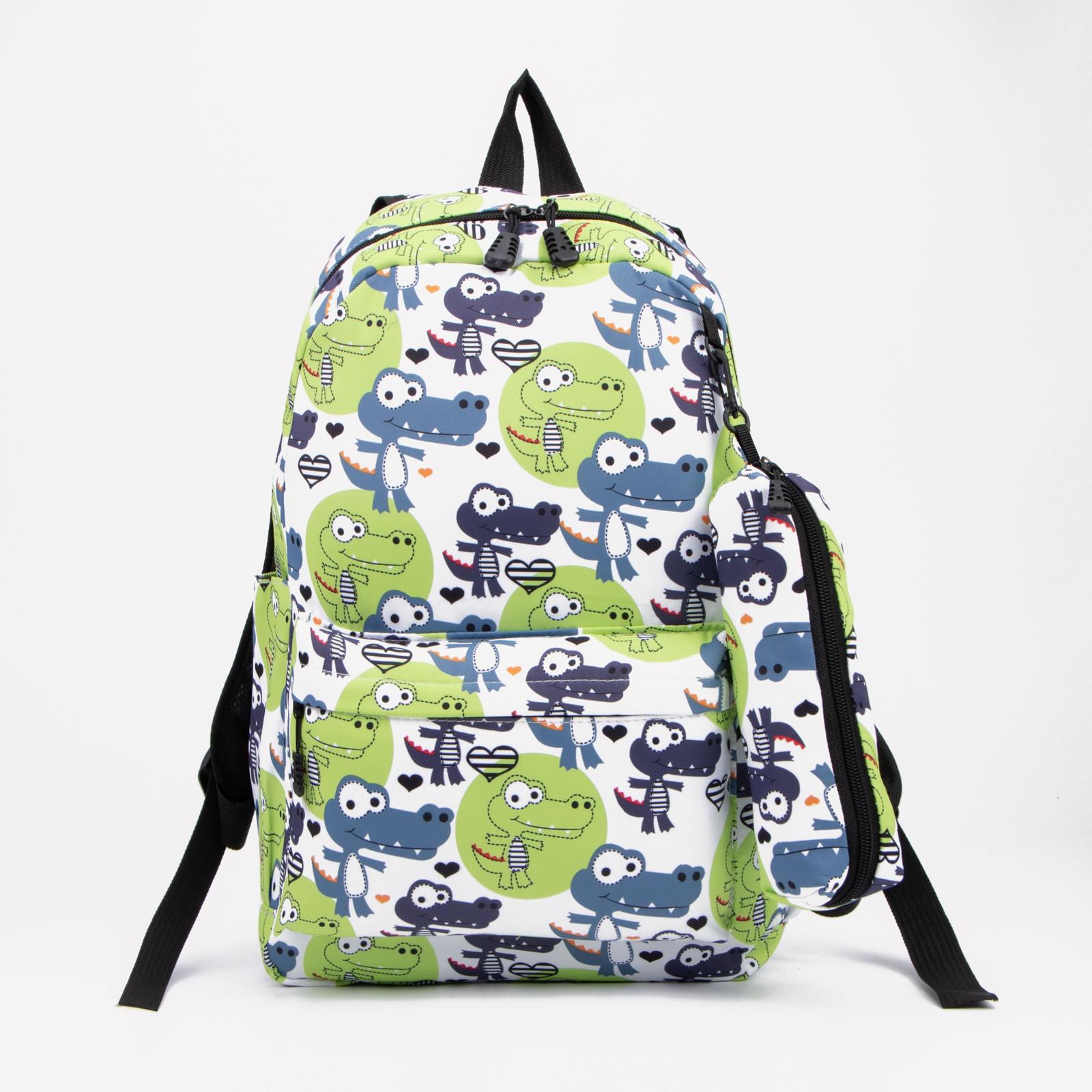 Рюкзак на молнии, наружный карман, пенал, цвет зелёный