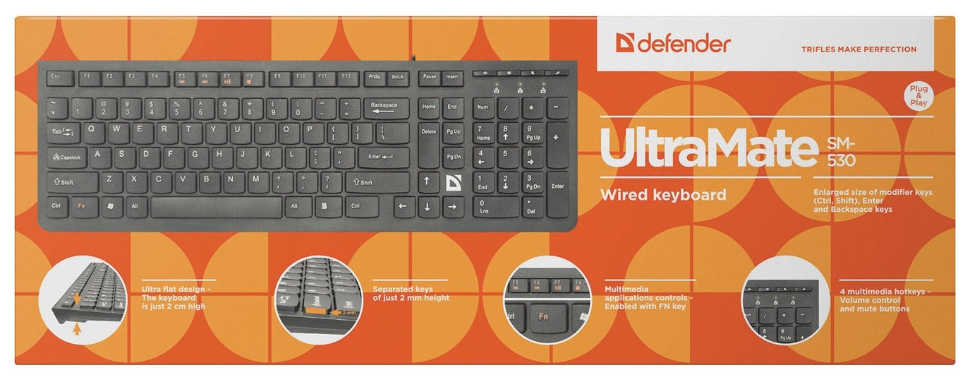 Клавиатура проводная Defender Ultramatesm-530 Ru, Usb, 104 + 16 допополнительных клавиш, черная