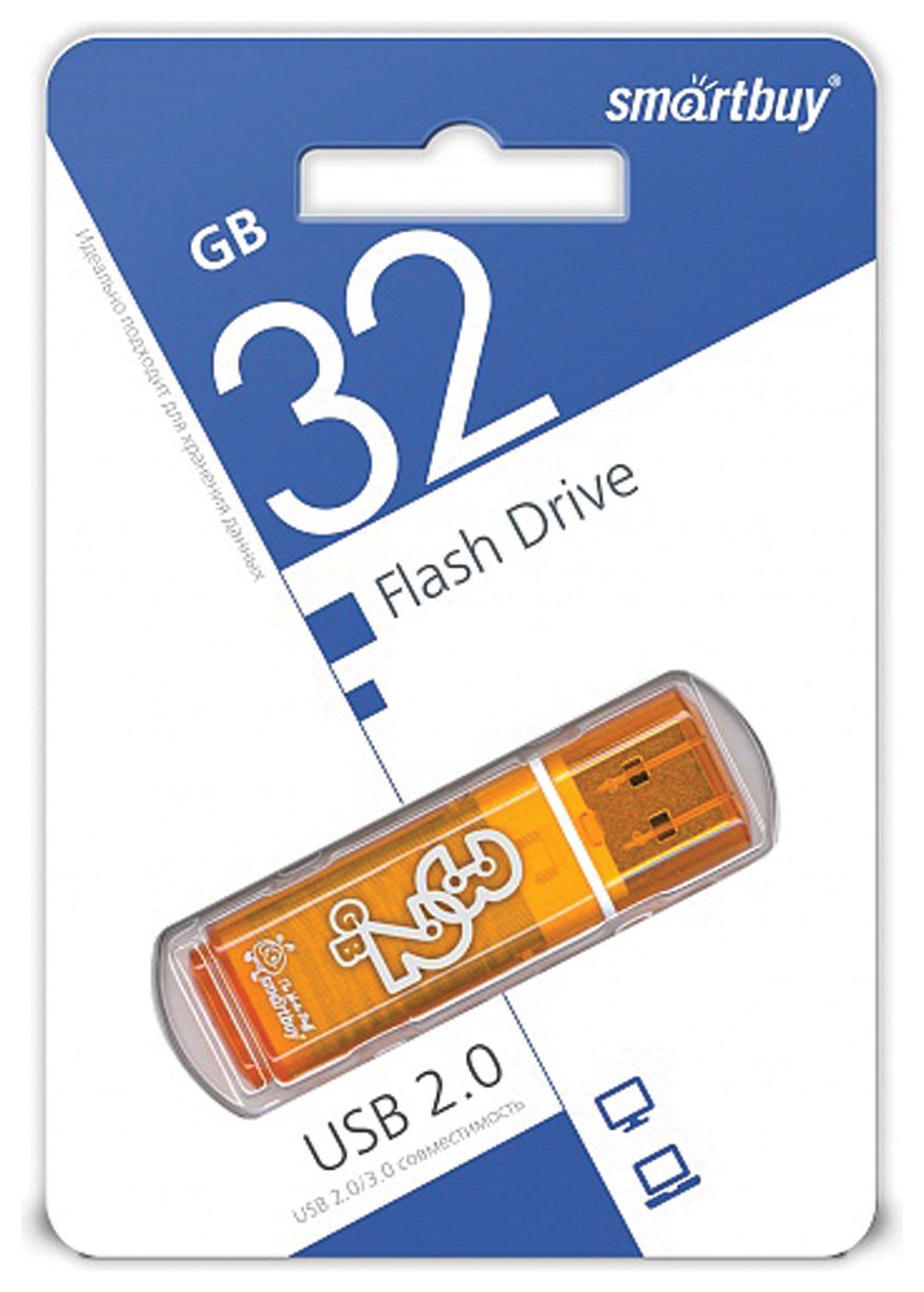 Флэш-диск 32 GB, SMARTBUY Glossy, USB 2.0, оранжевый