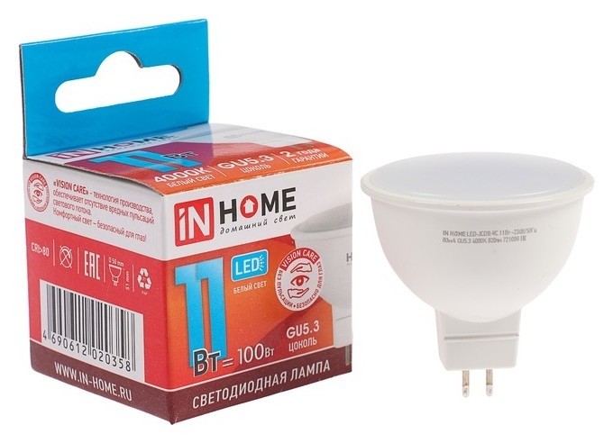 Лампа светодиодная IN Home Led-jcdr-vc, Gu5.3, 11 Вт, 230 В, 4000 К, 820 Лм