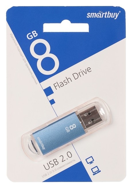 Флешка Smartbuy V-cut, 8 Гб, Usb2.0, чт до 25 мб/с, зап до 15 мб/с, синяя
