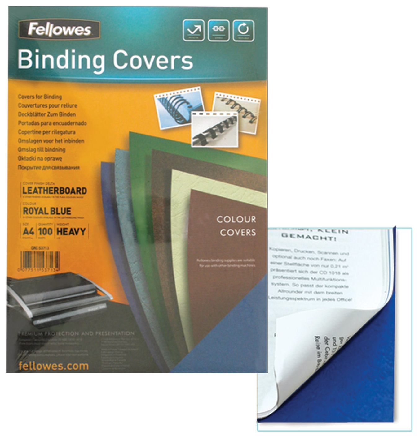 Обложки картонные для переплета, А4, комплект 100 шт., тиснение под кожу, 250 г/м2, синие, FELLOWES "Delta"