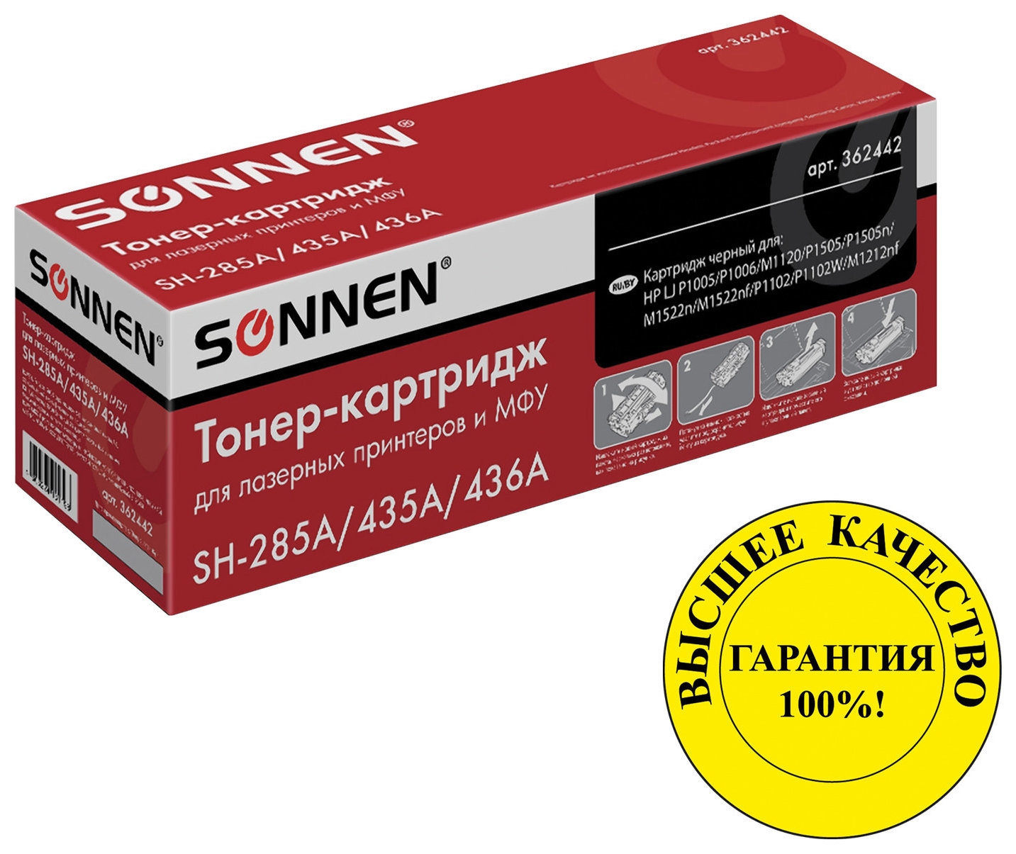 Картридж лазерный Sonnen (Sh-285a/435a/436a) для Hp Lj P1002/1504/1102/m1212, высшее качество, ресурс 2000 стр.