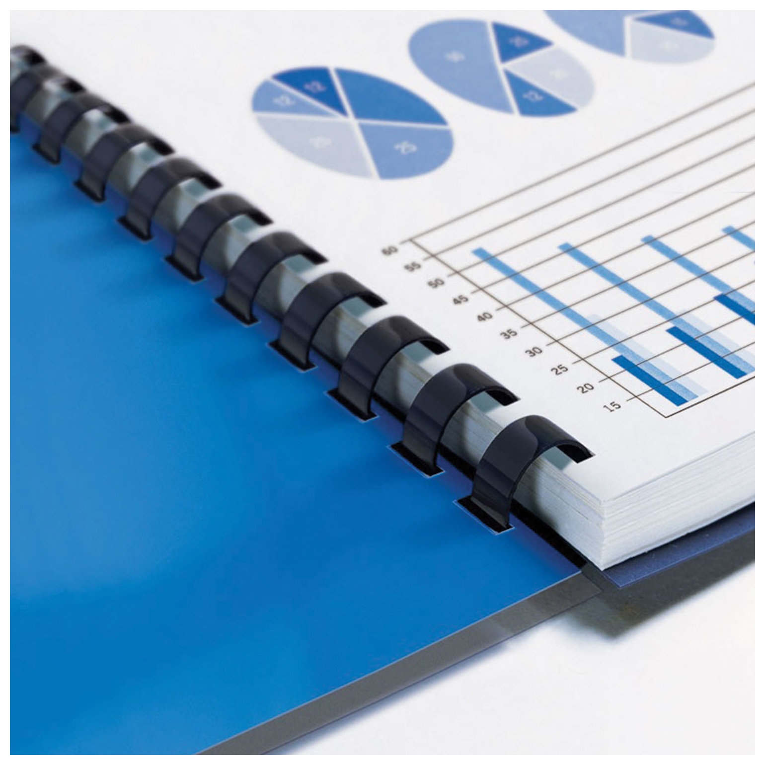 Пластиковая пружина для переплета документов. Рекомендуется использовать для переплета документов объемом от 411 до 450 листов. Преимуществом является возможность добавить листы в уже переплетенный документ. Совместима с большинством переплетных машин.