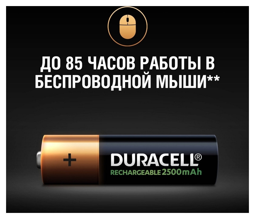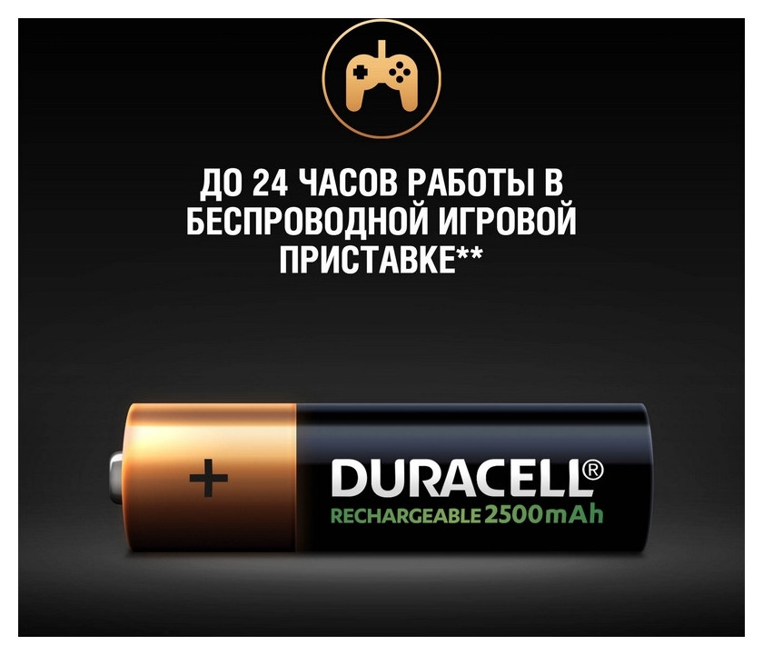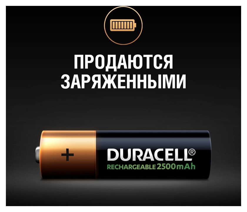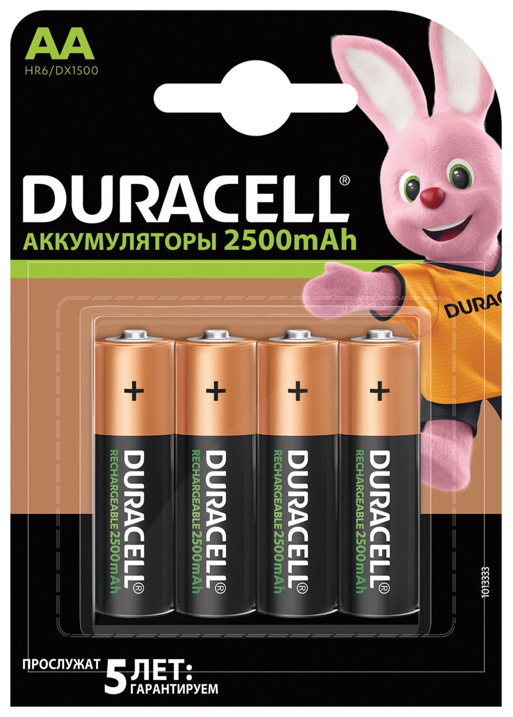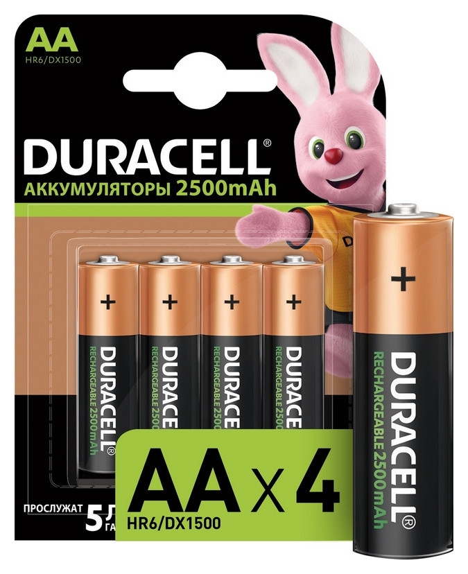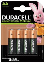 Батарейки аккумуляторные DURACELL, АА (HR06), Ni-Mh, 2500 mAh, комплект 4 шт., в блистере