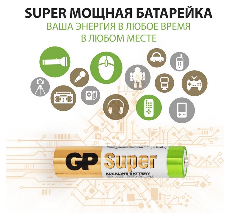 Батарейка алкалиновая GP Super, Aaa, Lr03-4s, 1.5в, спайка, 4 шт.