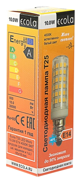 Лампа светодиодная Ecola, T25, 10 Вт, E14, 4000 K, 340°, для холодильников и швейных машин