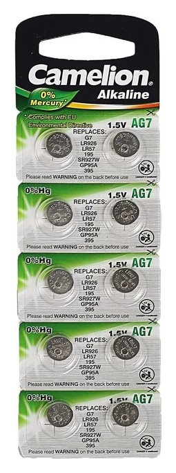 Батарейка алкалиновая Camelion Mercury Free, AG7 (395, Lr926)-10bl, 1.5в, блистер, 10 шт.