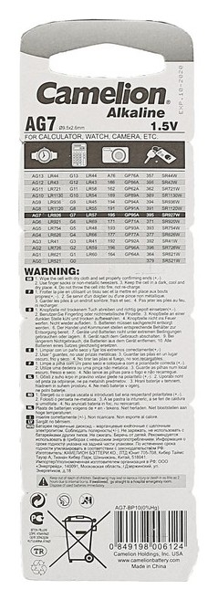 Невозможно представить себе современный мир без электроприборов. Благодаря качественным материалам и работе дизайнеров они способны сделать нашу жизнь комфортнее и порадовать глаз. Батарейка алкалиновая Camelion Mercury Free, AG7 (395, LR926)-10BL, 1.5В, блистер, 10 шт. — прекрасный выбор, если вы находитесь в поиске товара, который идеально впишется в ежедневную жизнь и прослужит долго.