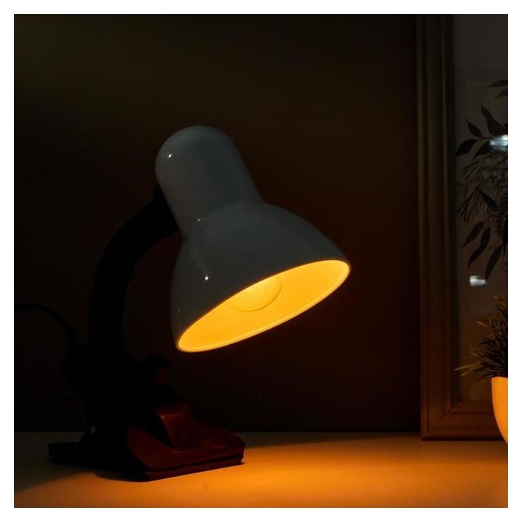 Лампа настольная е27, светорегулятор, на зажиме (220в) белая 26х13х11
