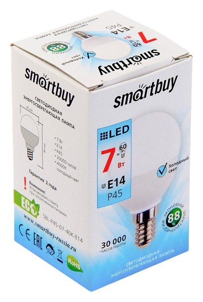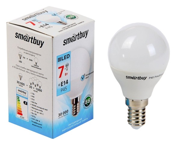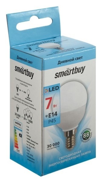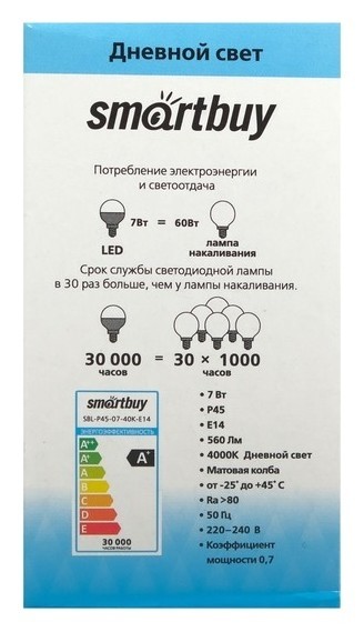 Лампа Cветодиодная Smartbuy, P45, E14, 7 Вт, 4000 К, дневной белый свет