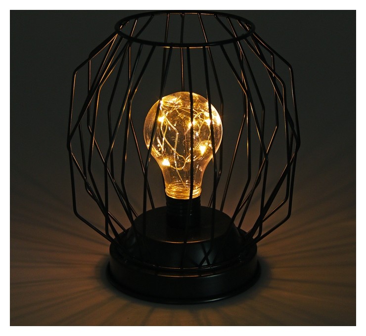 Лампа настольная лофт "Гараж" чёрная от батареек 2xааа 19х16х16 см