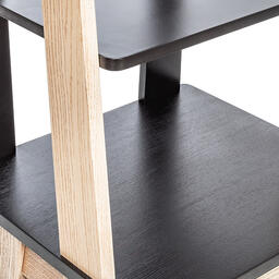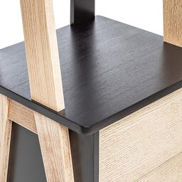 • Материал каркаса МДФ (16 мм), шпон (строганный шпон ясеня — боковины), фанера (20-24 мм — ножки и столешница), эмаль (полки)