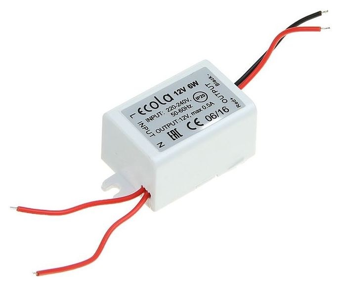Блок питания для светодиодной ленты Ecola, 6 Вт, 220-12 В, Ip20