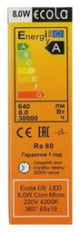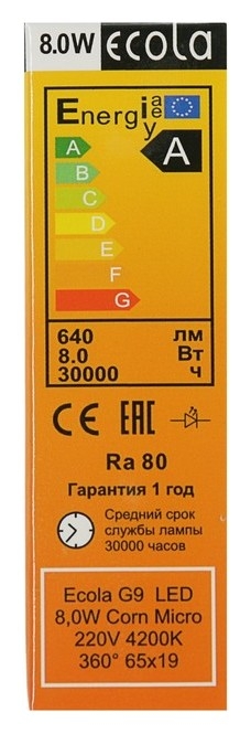 Лампа светодиодная Ecola LED Premium, 8 Вт, G9, 4200 K, 360°, 65x19 мм
