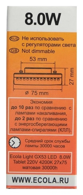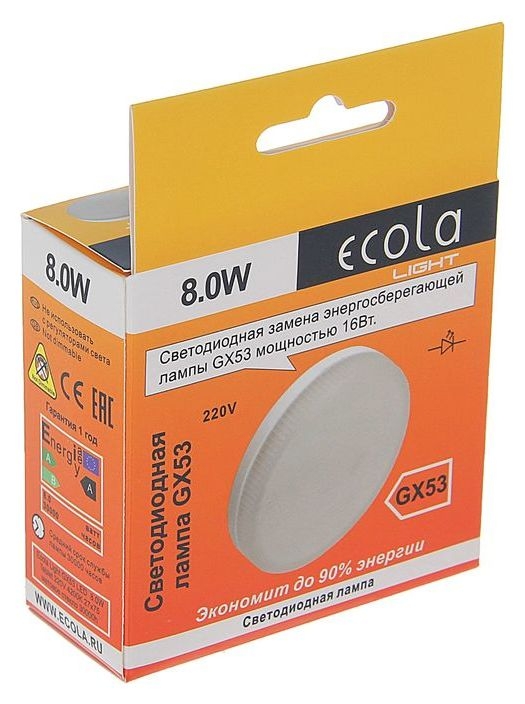 Ультратонкая энергосберегающая лампа Ecola GX53 8 Вт позволит заменить обычную лампу накаливания в осветительных приборах. Она улучшит условия освещения и поможет снизить уровень потребления электроэнергии.