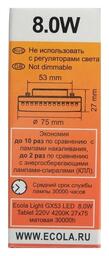 Лампа светодиодная Ecola, 8 Вт, Gx53, 4200 K, 27x75 мм, матовое стекло