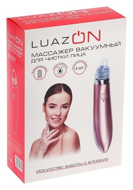 Вакуумный массажер для чистки лица Luazon Lmz-050, акб, вакуумный, 4 насадки