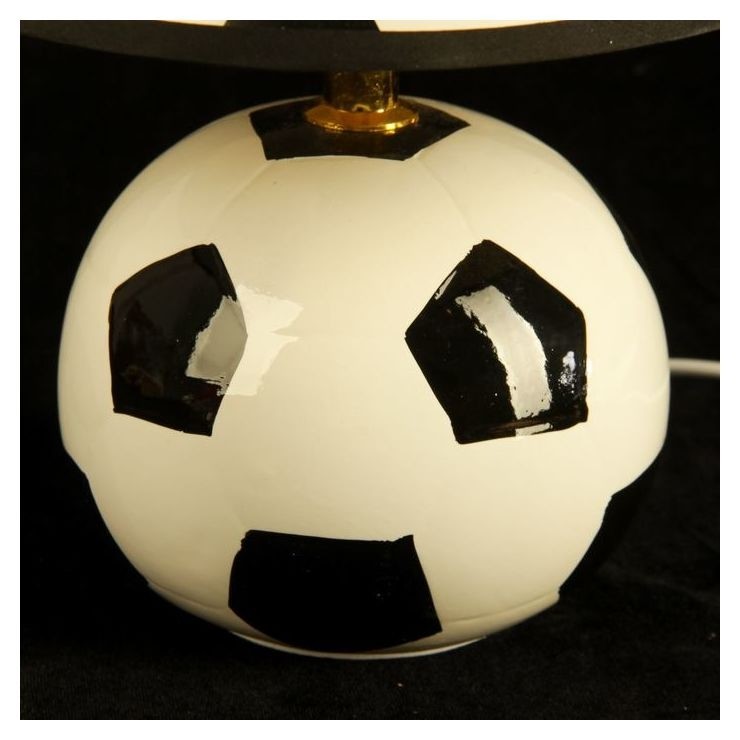 Декоративная лампа «Для футболиста» с абажуром из плотного картона украсит интерьер детской комнаты. Керамическое основание в виде мяча покрыто глазурью. Имеет размеры: 20 × 20 × 26 см.