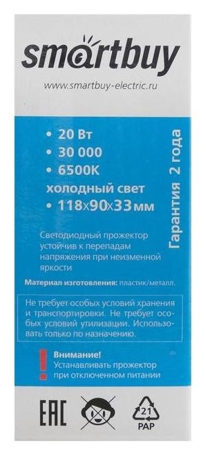 Невозможно представить себе современный мир без электроприборов. Благодаря качественным материалам и работе дизайнеров они способны сделать нашу жизнь комфортнее и порадовать глаз. Прожектор светодиодный Smartbuy FL SMD LIGHT, 20 Вт, 6500 К, 1100 Лм, IP65, холодный белый — прекрасный выбор, если вы находитесь в поиске товара, который идеально впишется в ежедневную жизнь и прослужит долго.