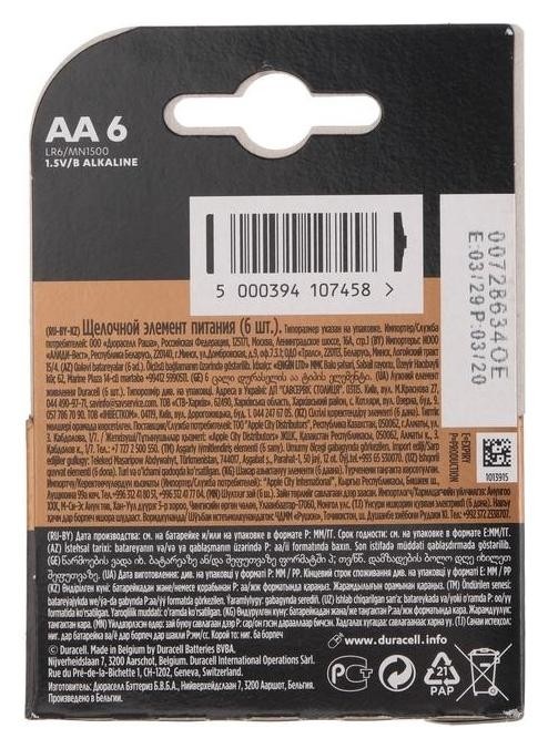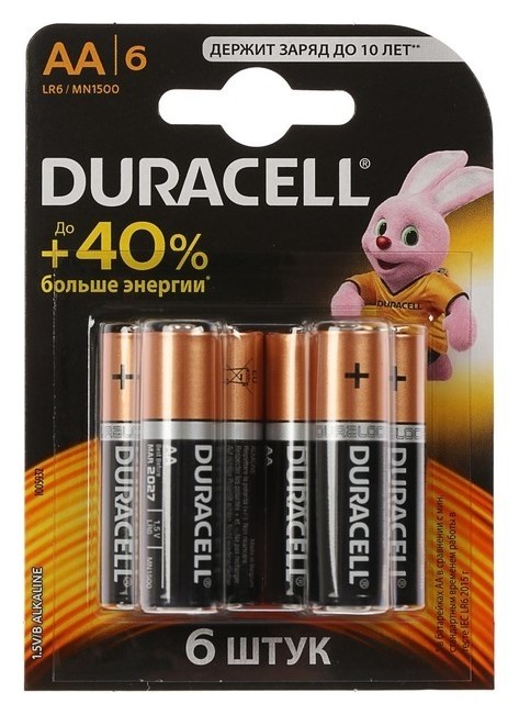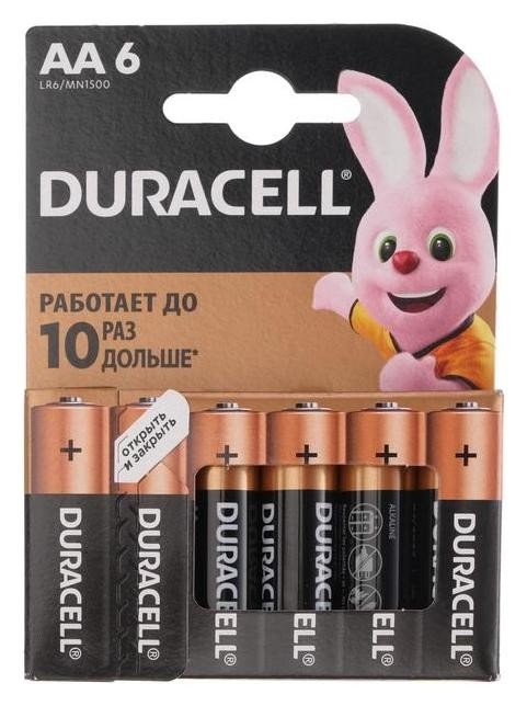 Батарейка алкалиновая Duracell Basic, AA, Lr6-6bl, 1.5в, блистер, 6 шт.