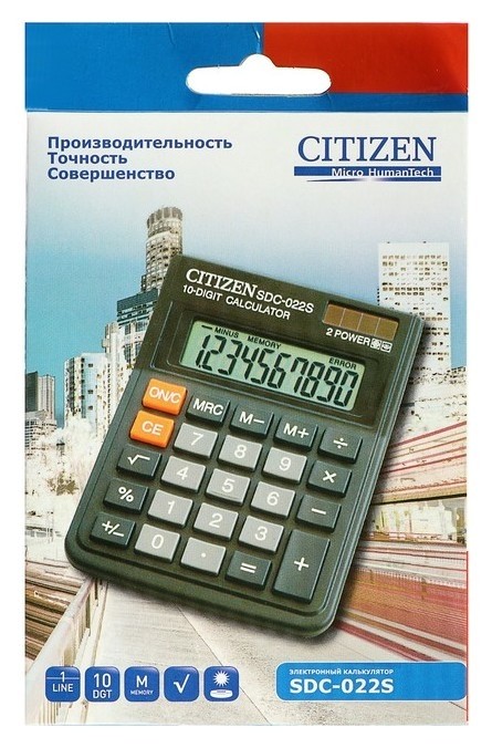 Калькулятор настольный 10-разрядный SDC-022S, двойное питание