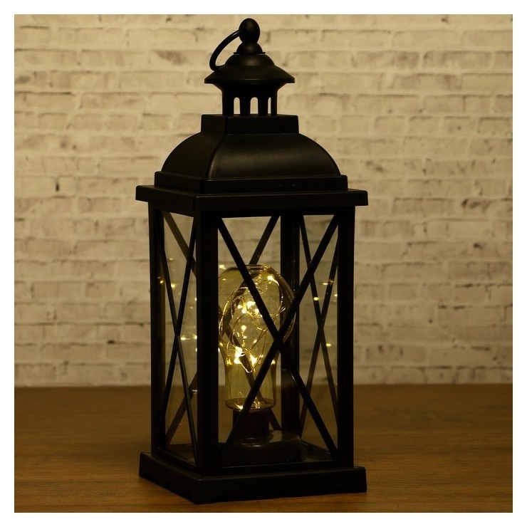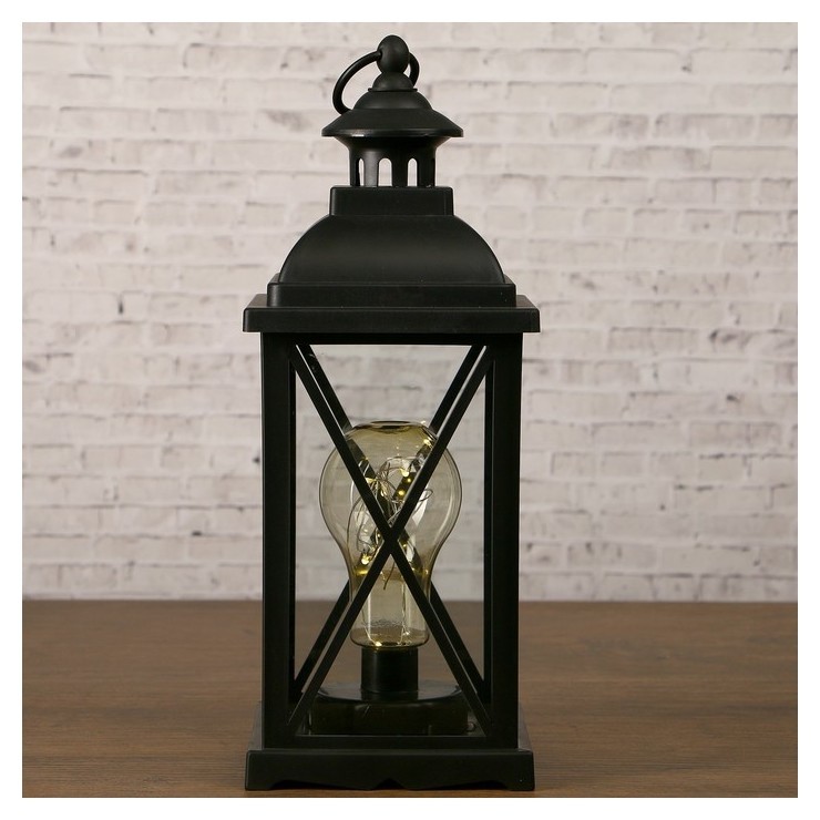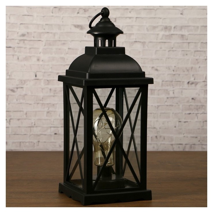 Лампа настольная лофт + подвес "Фонарь с лампой" чёрная от батареек 3ааа 35х13,5х13,5 см