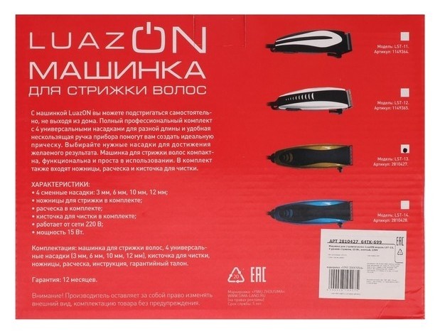 Машинка для стрижки волос Luazon Ltri-14, 4 уровня стрижки, 15 Вт, золото, 220v