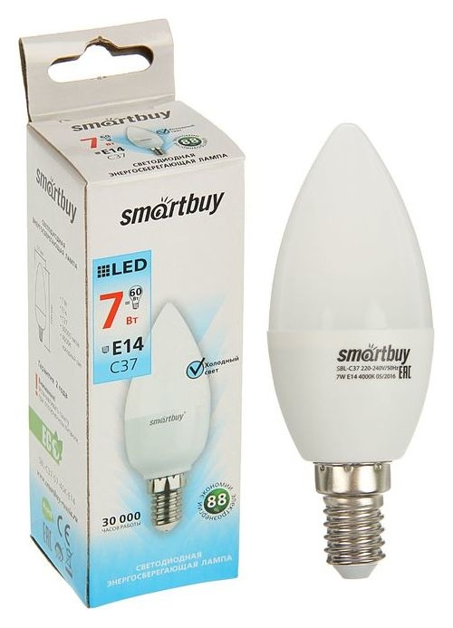 Лампа Cветодиодная Smartbuy, C37, E14, 7 Вт, 4000 К, дневной белый