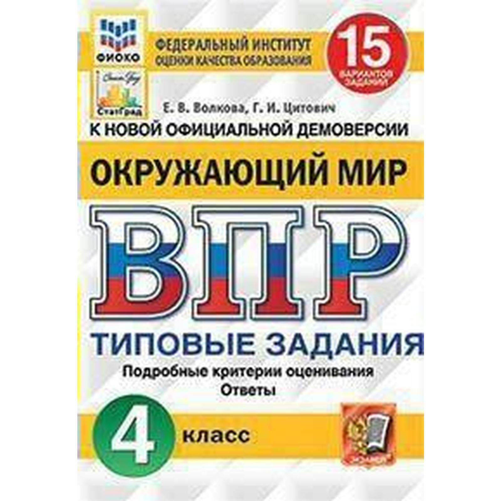 Тренажер. ФГОС. Окружающий мир. 15 вариантов, ФИОКО, 4 класс. Волкова Е. В.