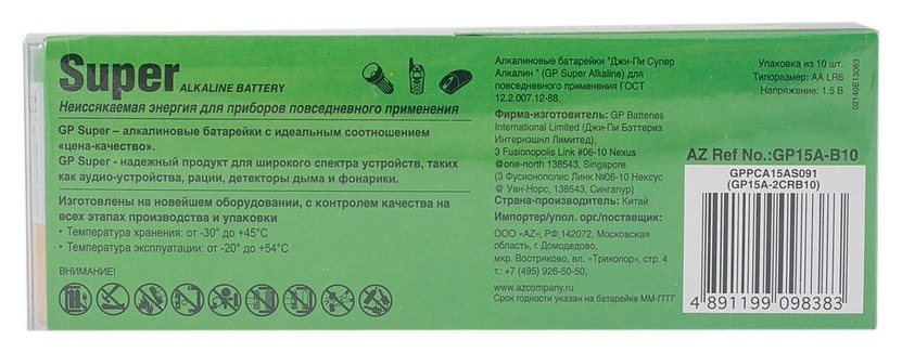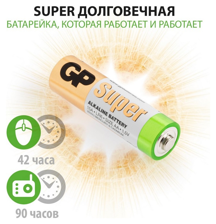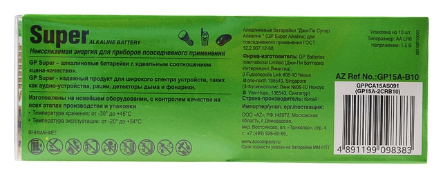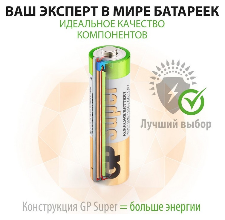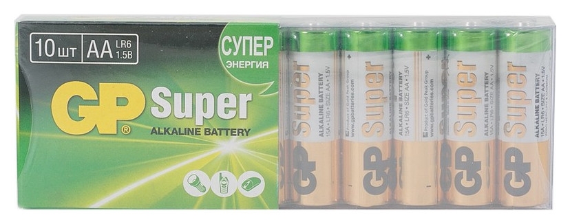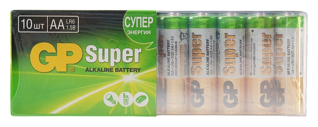 Батарейка алкалиновая GP Super, AA, Lr6-10s, 1.5в, спайка, 10 шт.
