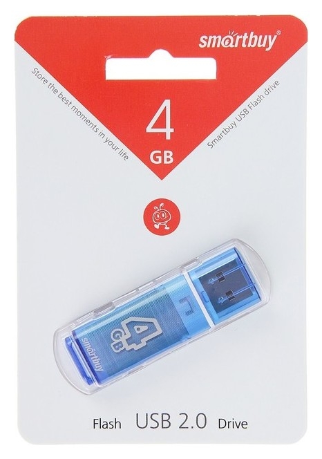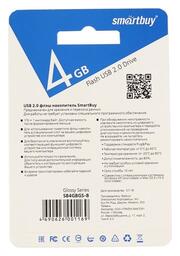 Флешка Smartbuy Glossy, 4 Гб, Usb2.0, чт до 25 мб/с, зап до 15 мб/с, синяя