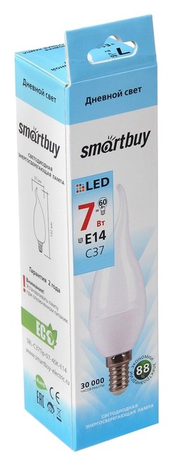 Невозможно представить себе современный мир без электроприборов. Благодаря качественным материалам и работе дизайнеров они способны сделать нашу жизнь комфортнее и порадовать глаз. Лампа cветодиодная Smartbuy, C37, E14, 7 Вт, 4000 К, матовое стекло, дневной белый свет — прекрасный выбор, если вы находитесь в поиске товара, который идеально впишется в ежедневную жизнь и прослужит долго.