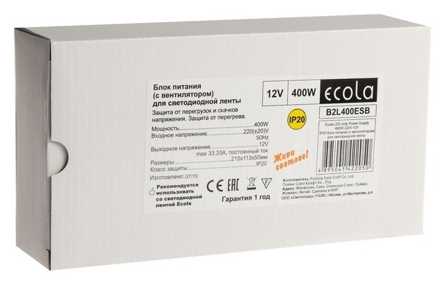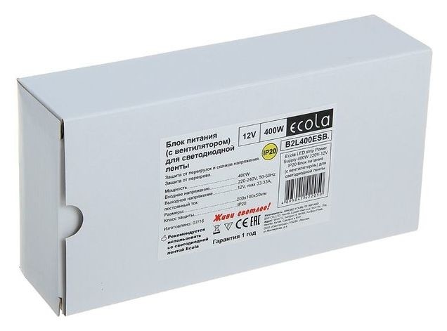 Блок питания для светодиодной ленты Ecola, 400 Вт, 220-12 В, Ip20, с вентилятором