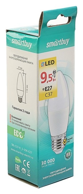 Невозможно представить себе современный мир без электроприборов. Благодаря качественным материалам и работе дизайнеров они способны сделать нашу жизнь комфортнее и порадовать глаз. Лампа светодиодная Smartbuy, C37, Е27, 9.5 Вт, 3000 К, теплый белый свет — прекрасный выбор, если вы находитесь в поиске товара, который идеально впишется в ежедневную жизнь и прослужит долго.