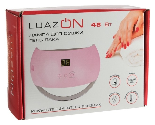 Лампа для гель-лака Luazon Luf-22, Led, 48 Вт, 220 В, 21 диод, таймер 30/60/99 сек., красный