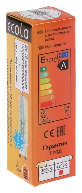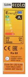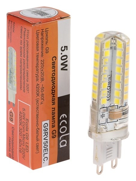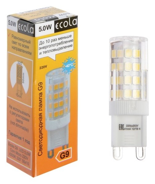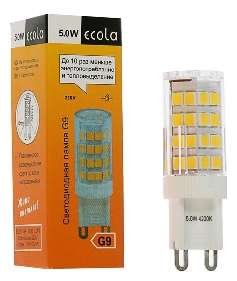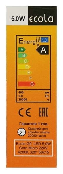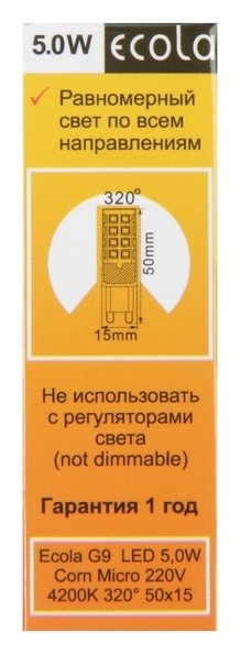 Лампа светодиодная Ecola LED Corn Micro, 5 Вт, G9, 4200 K, 320°, 50x15 мм, дневной белый
