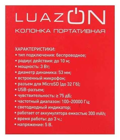 Портативная колонка Luazon Hi-tech08, 3 Вт, 300 мач, красная