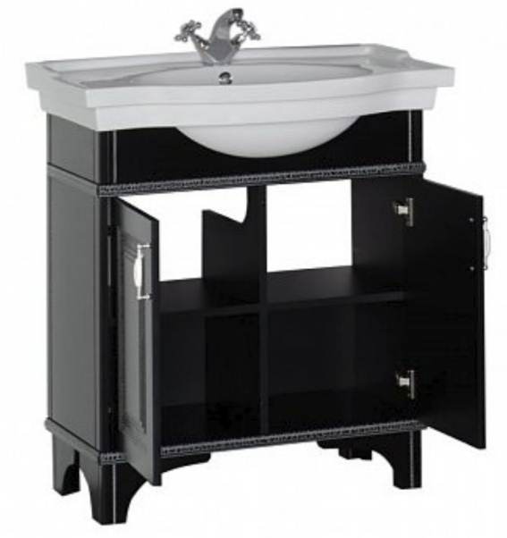 Тумба с раковиной Aquanet Валенса 80 черный краколет/серебро