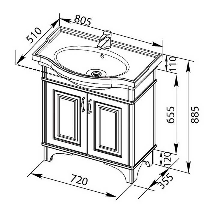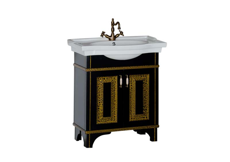 Тумба с раковиной Aquanet Валенса 80 черный краколет/золото