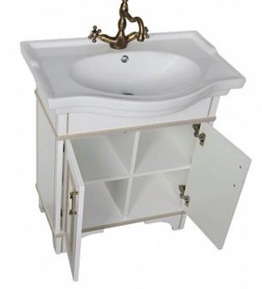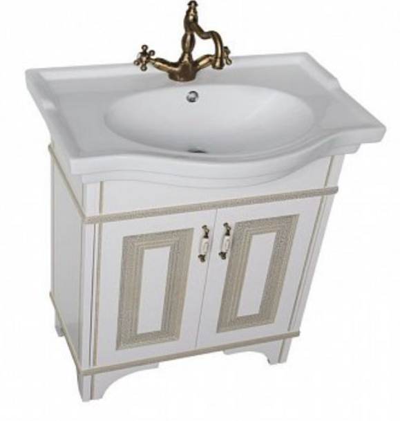 Тумба с раковиной Aquanet Валенса 80 белый краколет/золото